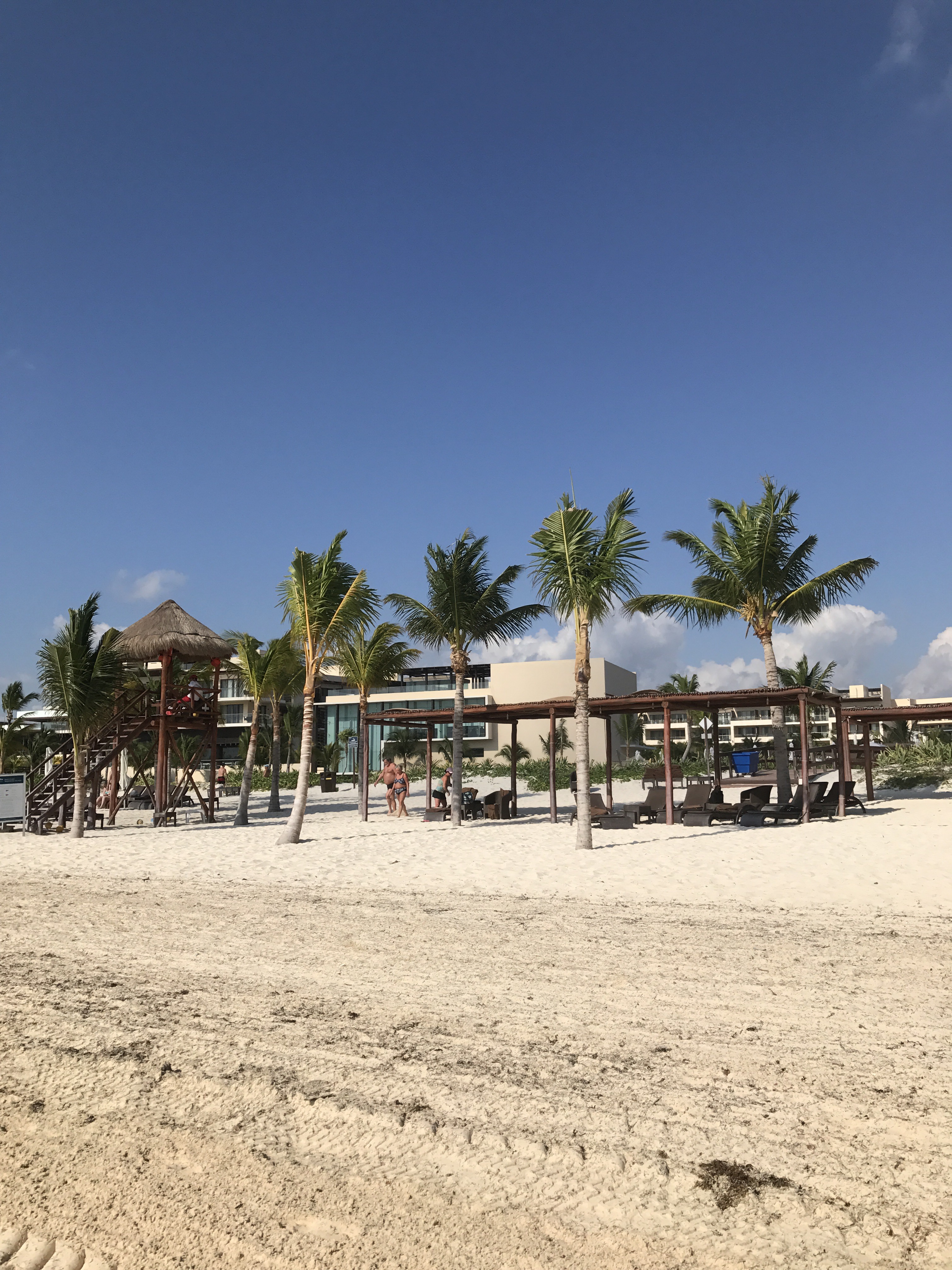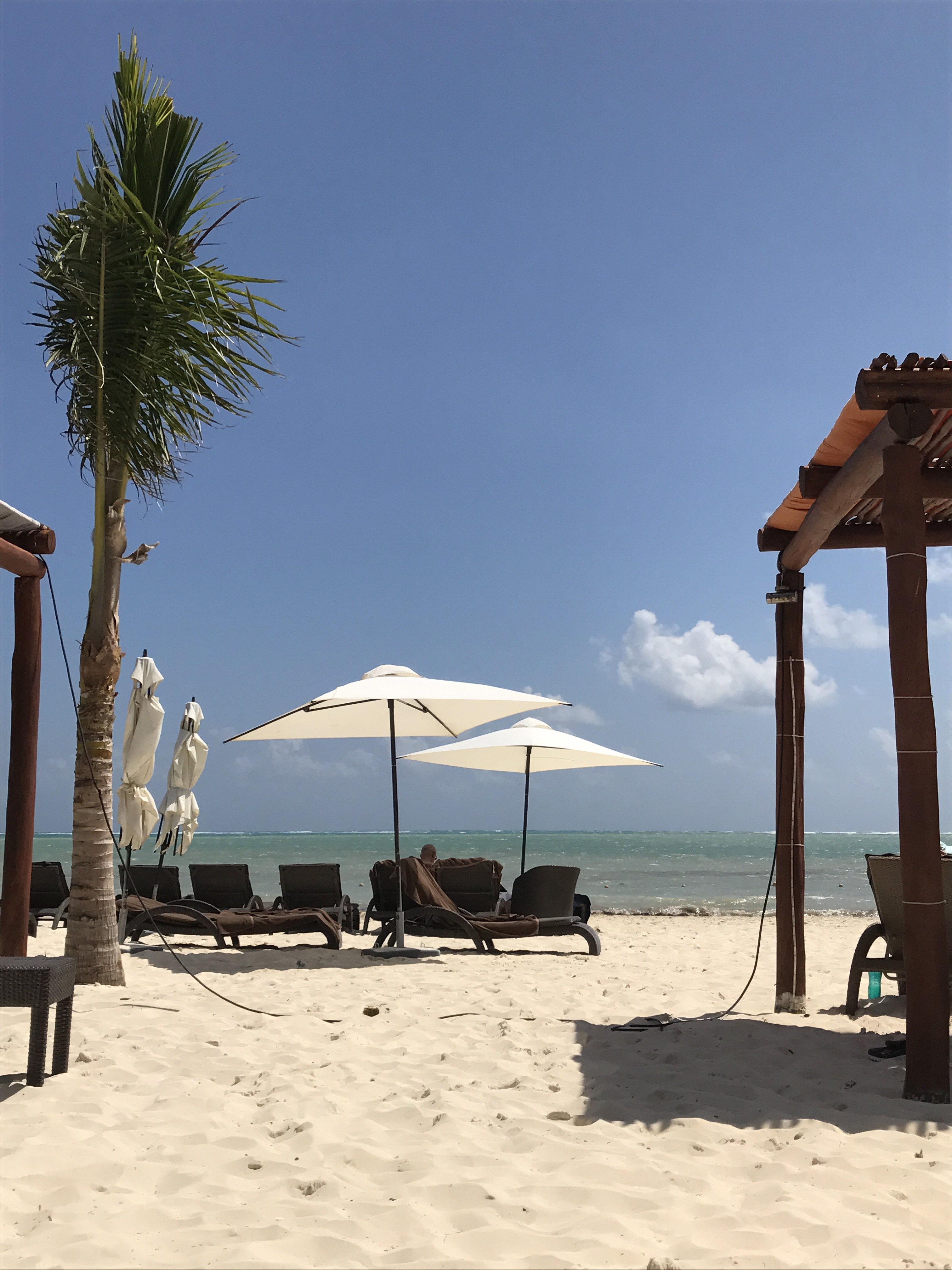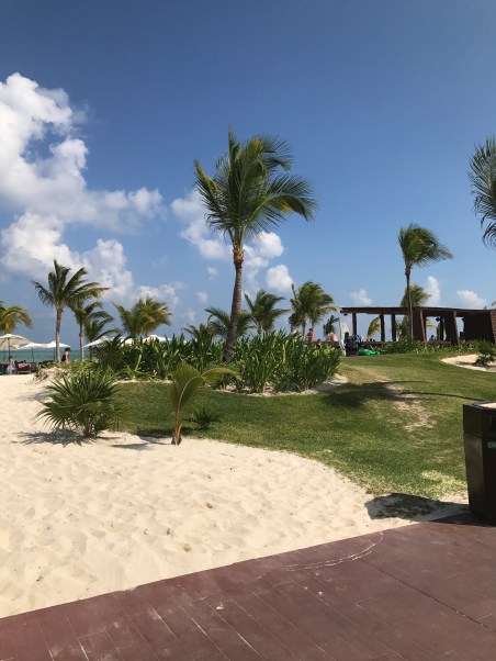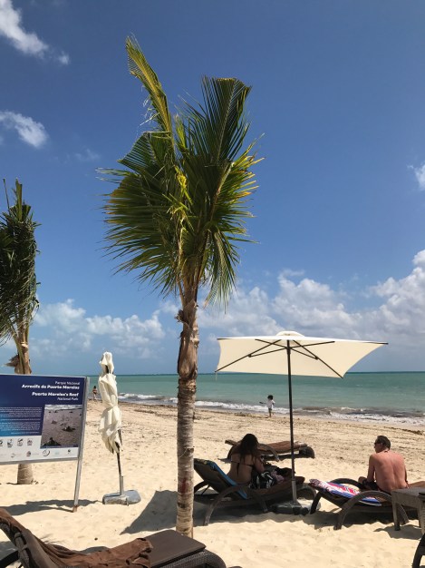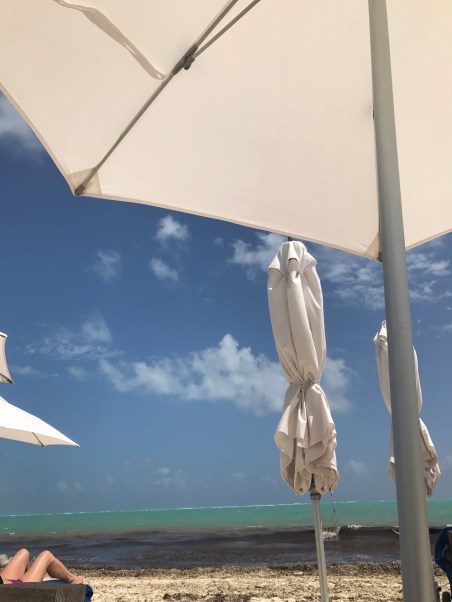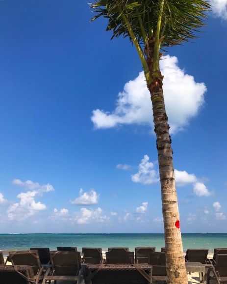 Today was a full beach day followed by dinner at Grazie, the Italian restaurant at the Royalton. I couldn’t believe how gorgeous the sky was during the day! Hardly a cloud in sight, and bluer than I ever imagined it could be. Just gorgeous. But you don’t have to take my word for it – see for yourselves!