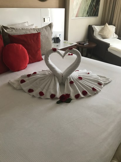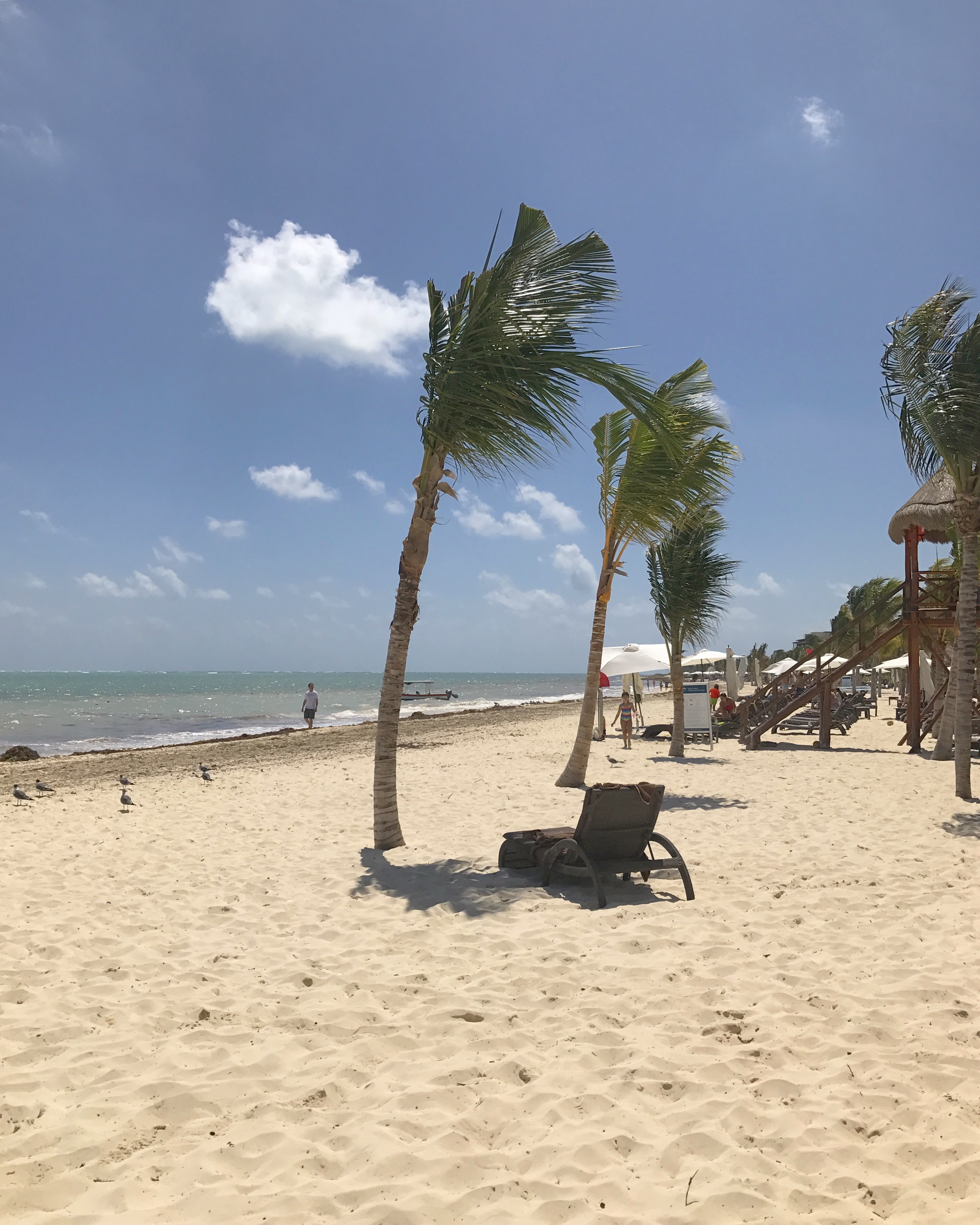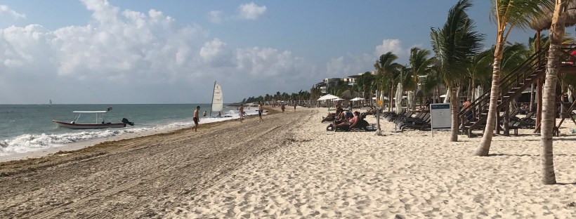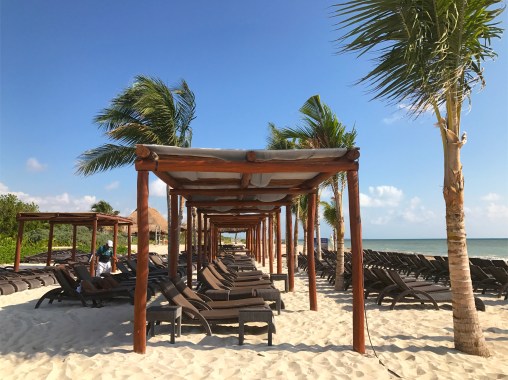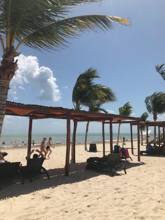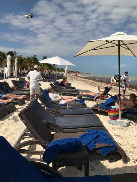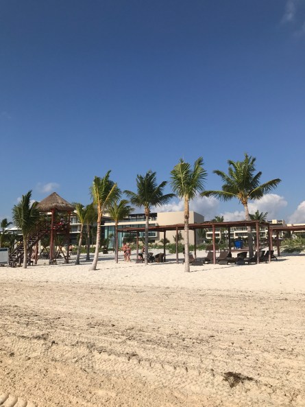 Today was our last morning in paradise, so we spent it wisely: early morning wake-up call, an hour walking and relaxing on the beach, and one last buffet brunch. The blue sky shone brilliantly and the turquoise ocean was calm and glinting, making me wish we could stay just one more day in Cancún. Overall, the hotel was fantastic – friendly staff, not too crowded, a great variety of (mostly) excellent food, plenty of beach chairs and loungers, tons of activities for kids and adults, great nighttime entertainment, a clean gym with many machines, filtered water everywhere on the property so you don’t need to worry about falling ill, etc. If you’re travelling as a couple or as a group of adults, I’d recommend staying in the adults-only Hideaway section rather than in the main Royalton buildings; it’s a little more exclusive, more private, and the staff are more attentive as they cater to fewer guests (there are 340 rooms in the Hideaway section versus 800 in the Royalton). There were some little glitches here and there, but that’s usually to be expected in large resorts in Mexico or the Caribbean. I can’t wait to go back!