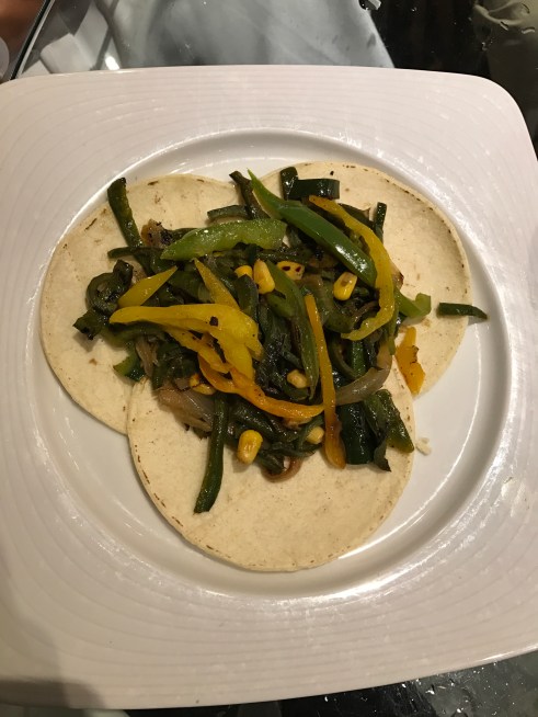 Vegetable tacos – cold, no spices or sauces, and the only flavour came from the corn!