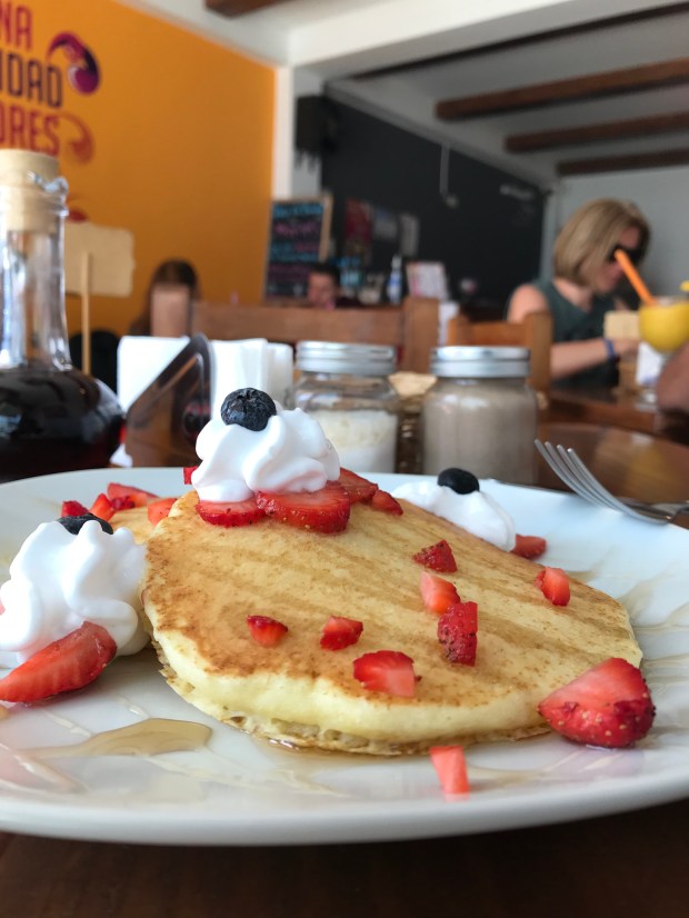 We returned to shore at noon and had 45 minutes to explore before departing for Huacachina. Our tour guides had pointed out restaurants where we would receive 10% off our meals for being Peru Hop passengers, so I stopped at one to try their famous maple hot cakes. This was my first time trying hot cakes, and I can promise you that it won’t be my last! They were delicious and really hit the spot – I guess the boat ride worked up my appetite.