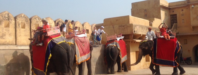 I’ve taken an elephant ride once before, around age 5, but was probably too excited to be scared. This time, I couldn’t help but wonder: what if the elephant collapses while heading up this steep cliff in 30 degrees?! Thankfully, other tourists around us looked just as nervous as I did. We met our Jaipur guide, Vijay, who explained that he would meet us at the top and take us on a tour of the Fort. My mum and I climbed onto a padded cart atop one of the elephants and, before we knew what was happening, we were off. You may not know this (I didn’t), but large animals tip and veer as they walk, making for a very bumpy ride. Let’s just say I was glad I’d taken Gravol before the ride! It would start to feel fun for a few minutes and then the animal would tip to one side, forcing us to lurch forward with each step. (I had a death grip on the side handle of the cart at all times to help steady myself.) Meanwhile, my mum was loving it! Behind us, my dad was having a ball – he had bought a colourful Rajasthani maharaja hat and looked like a king as he rode his elephant.  Continue reading